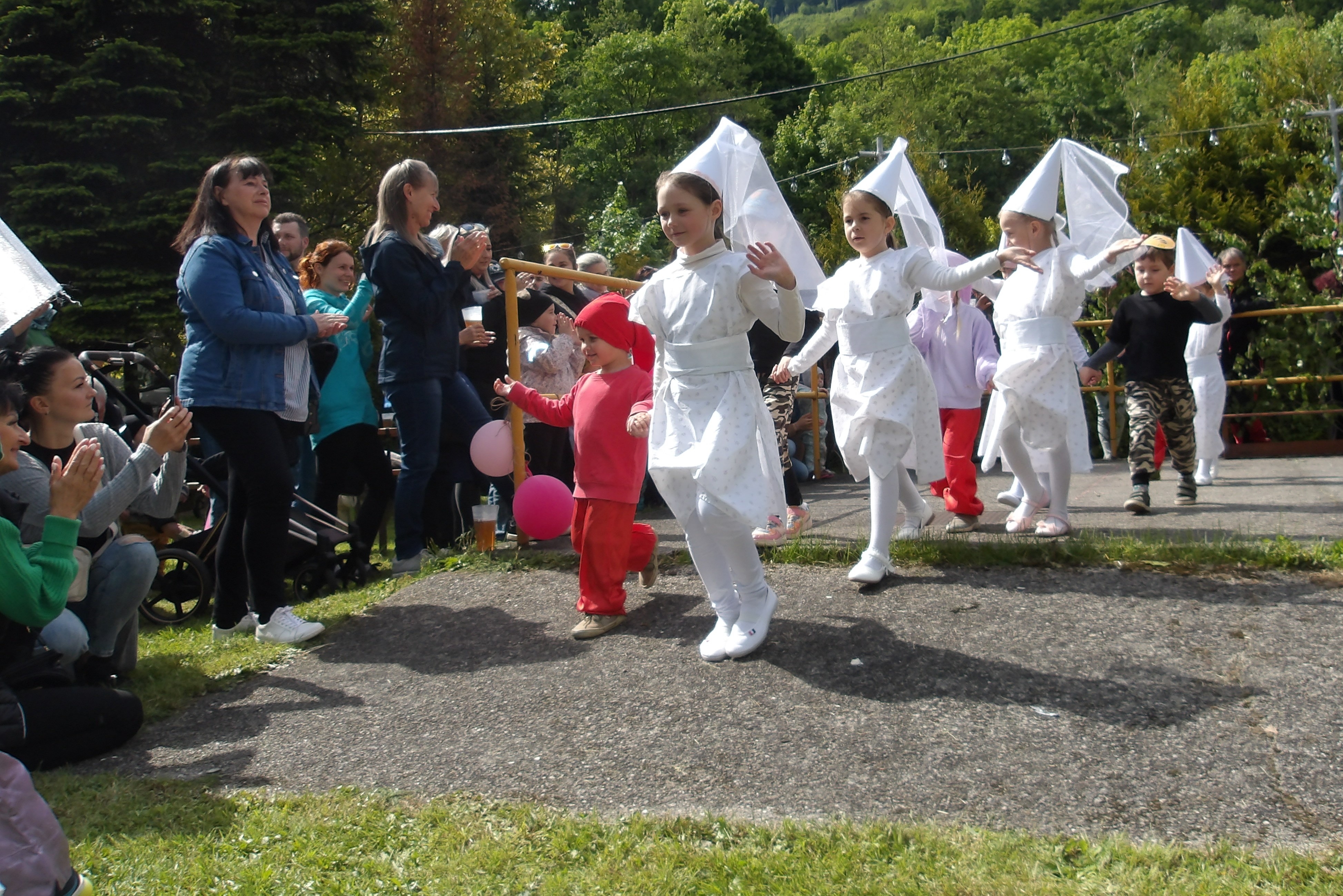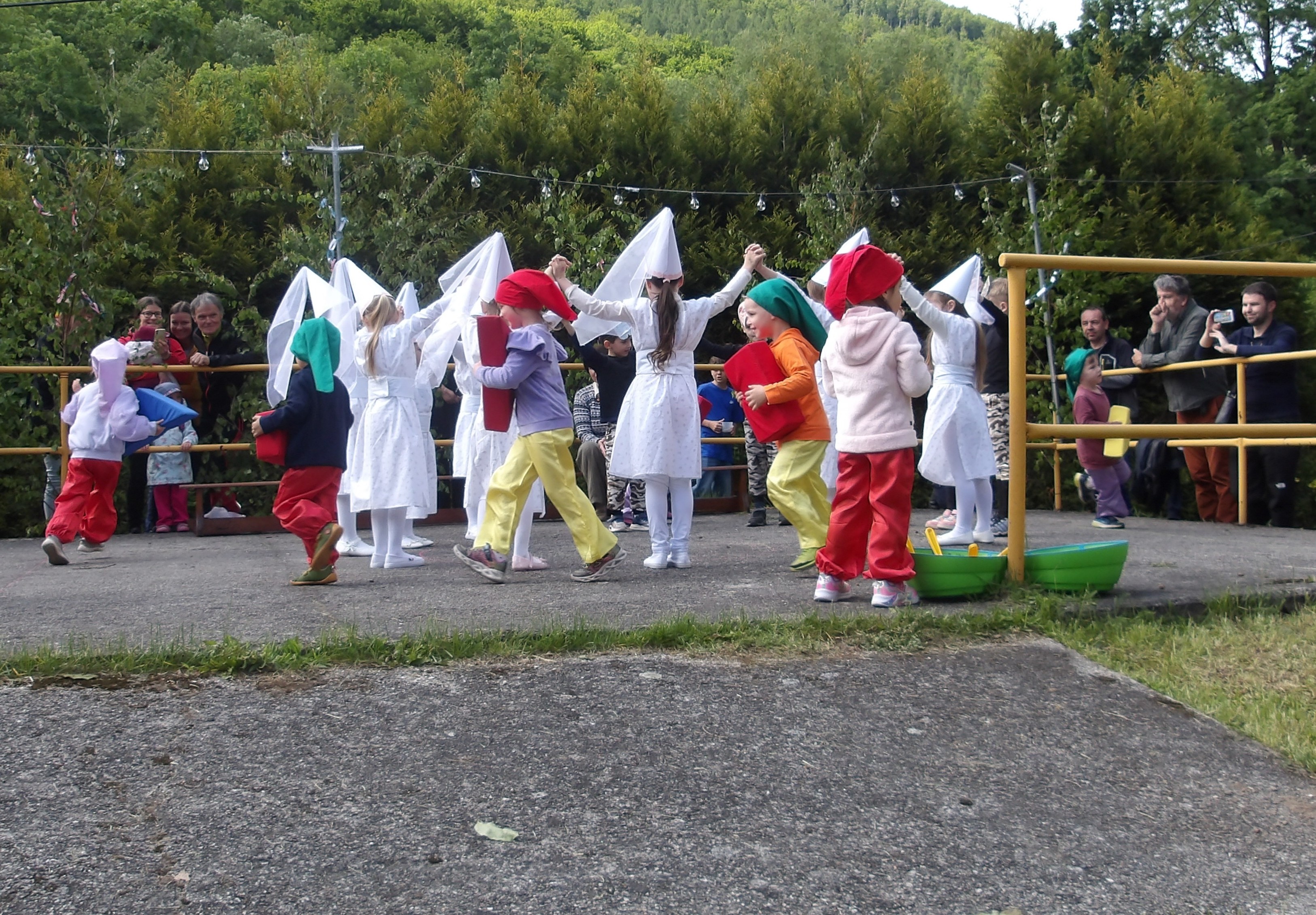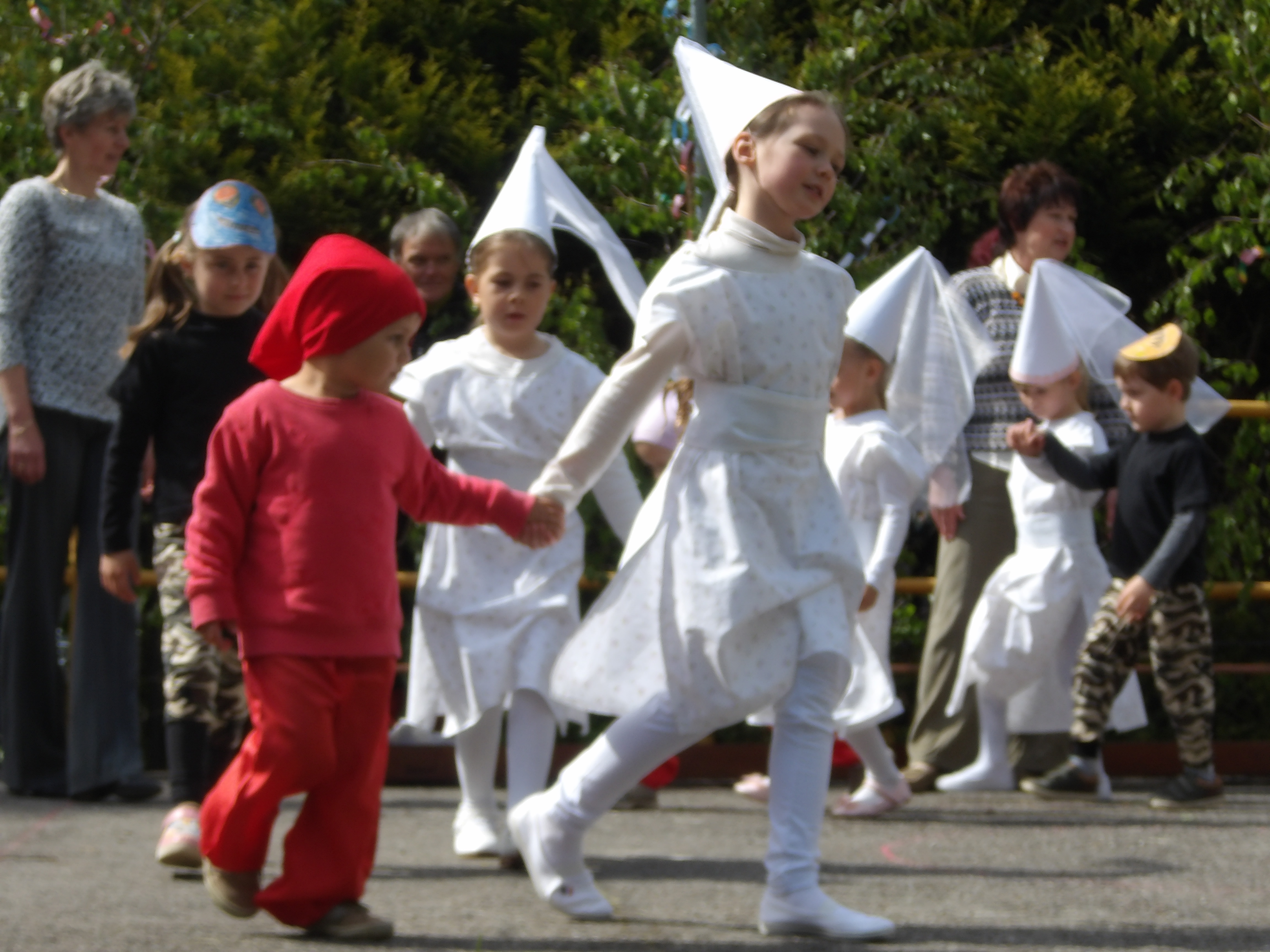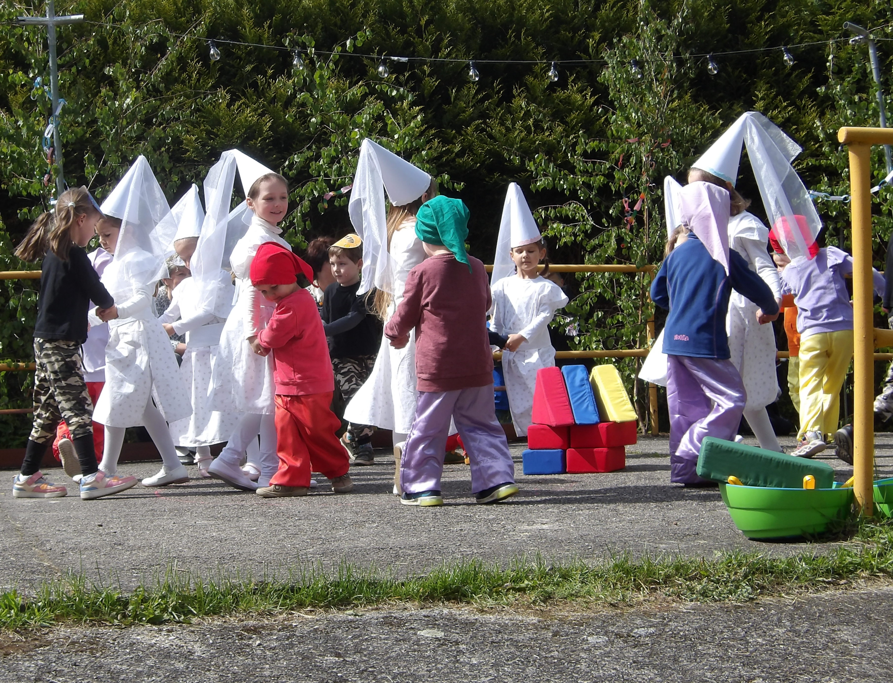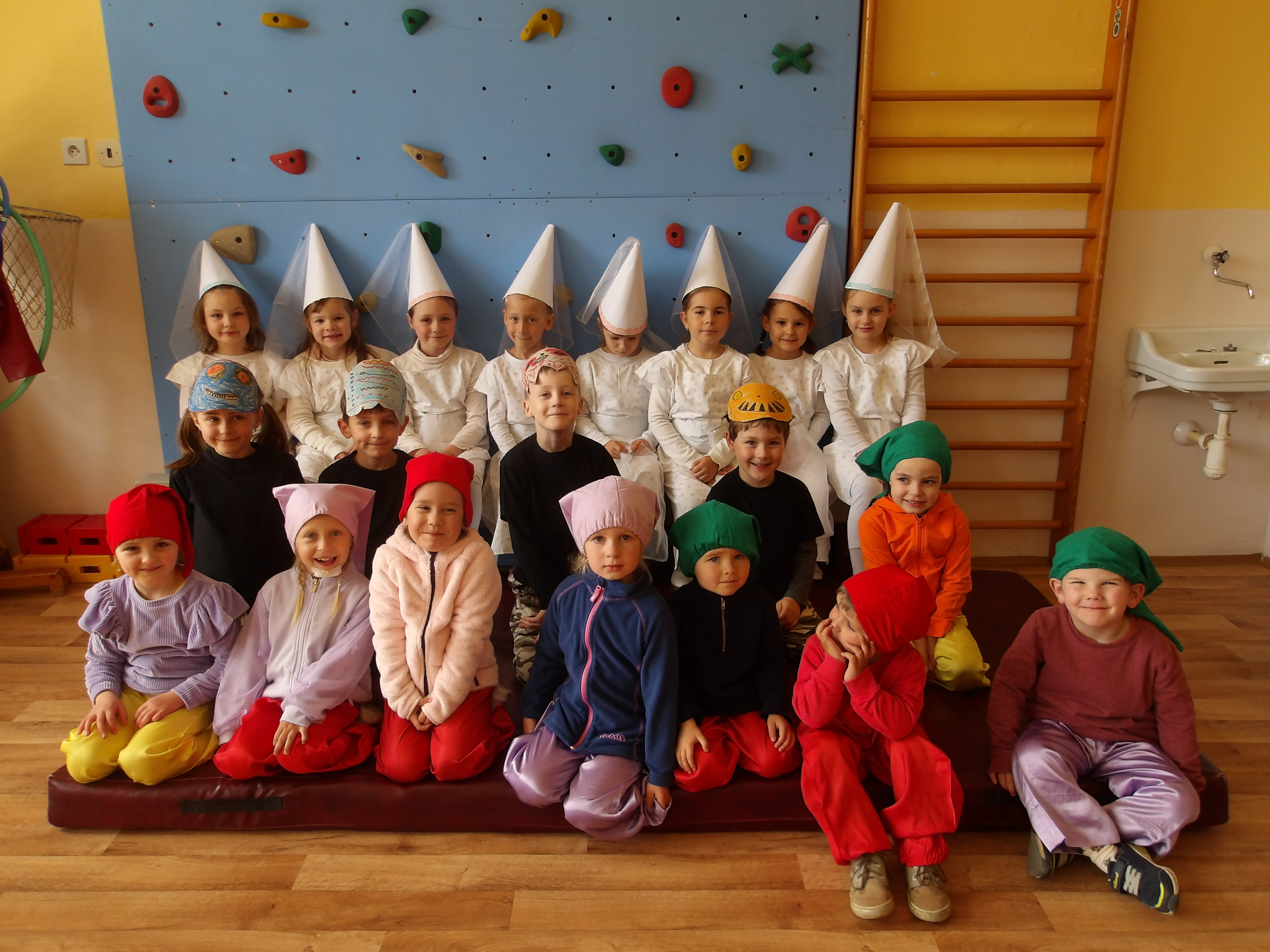 Tentokrát jsme se nechali inspirovat českým hudebním filmem. Dětem se písně okamžitě zalíbily, a tak vznikly tanečky pro bílé paní, kluky, co se bojí ve staré ruině hradu a samozřejmě trpaslíčky, kteří pomáhají s obnovou. Nejdříve jsme pilně nacvičovali...Pak už stačilo jen vyprosit si slunečné počasí a samozřejmě píle rodičů všech dětí, kteří se podíleli na přípravě zahradní slavnosti a úspěch byl na světě. Děkujeme všem za hezký zážitek