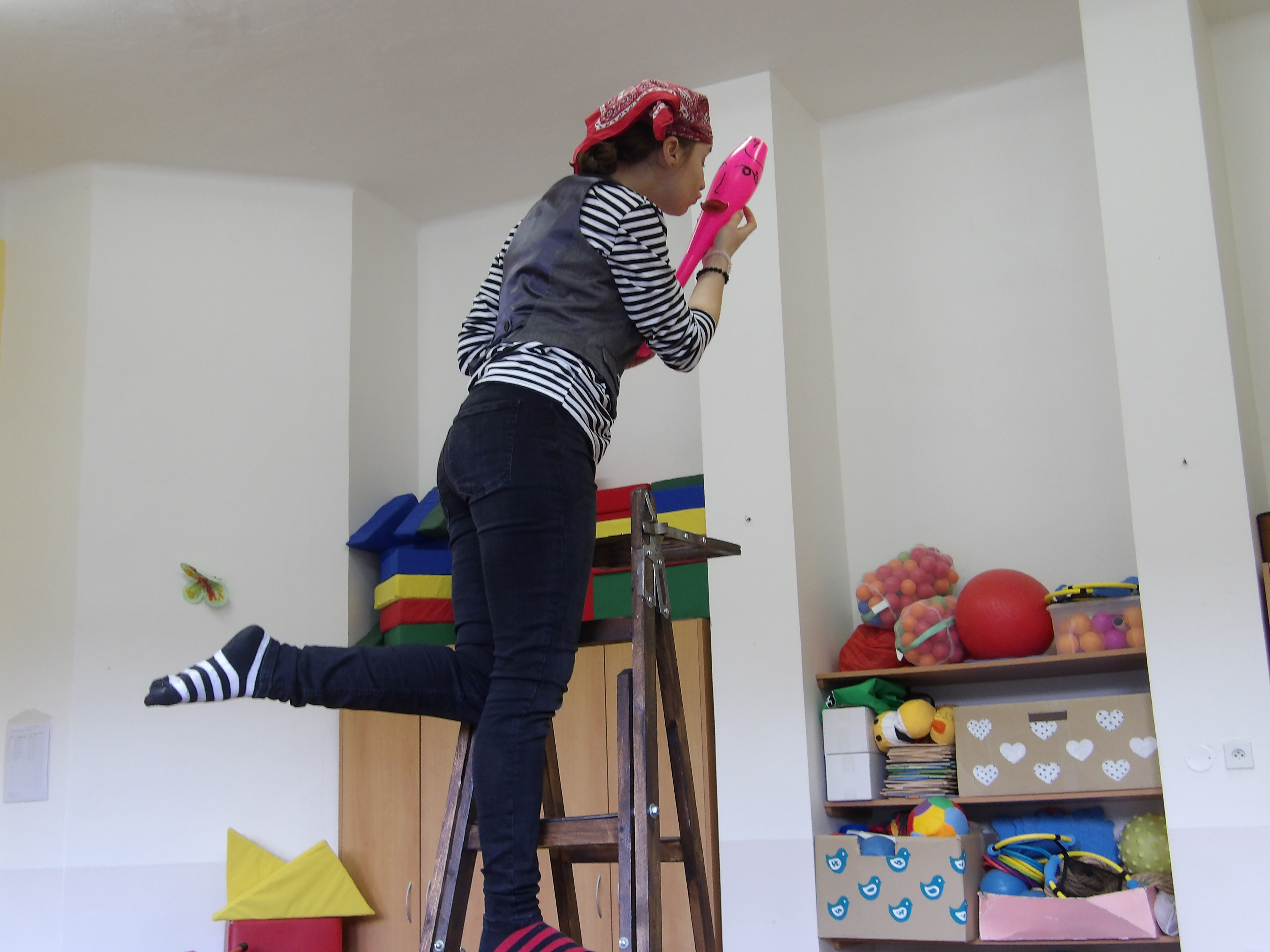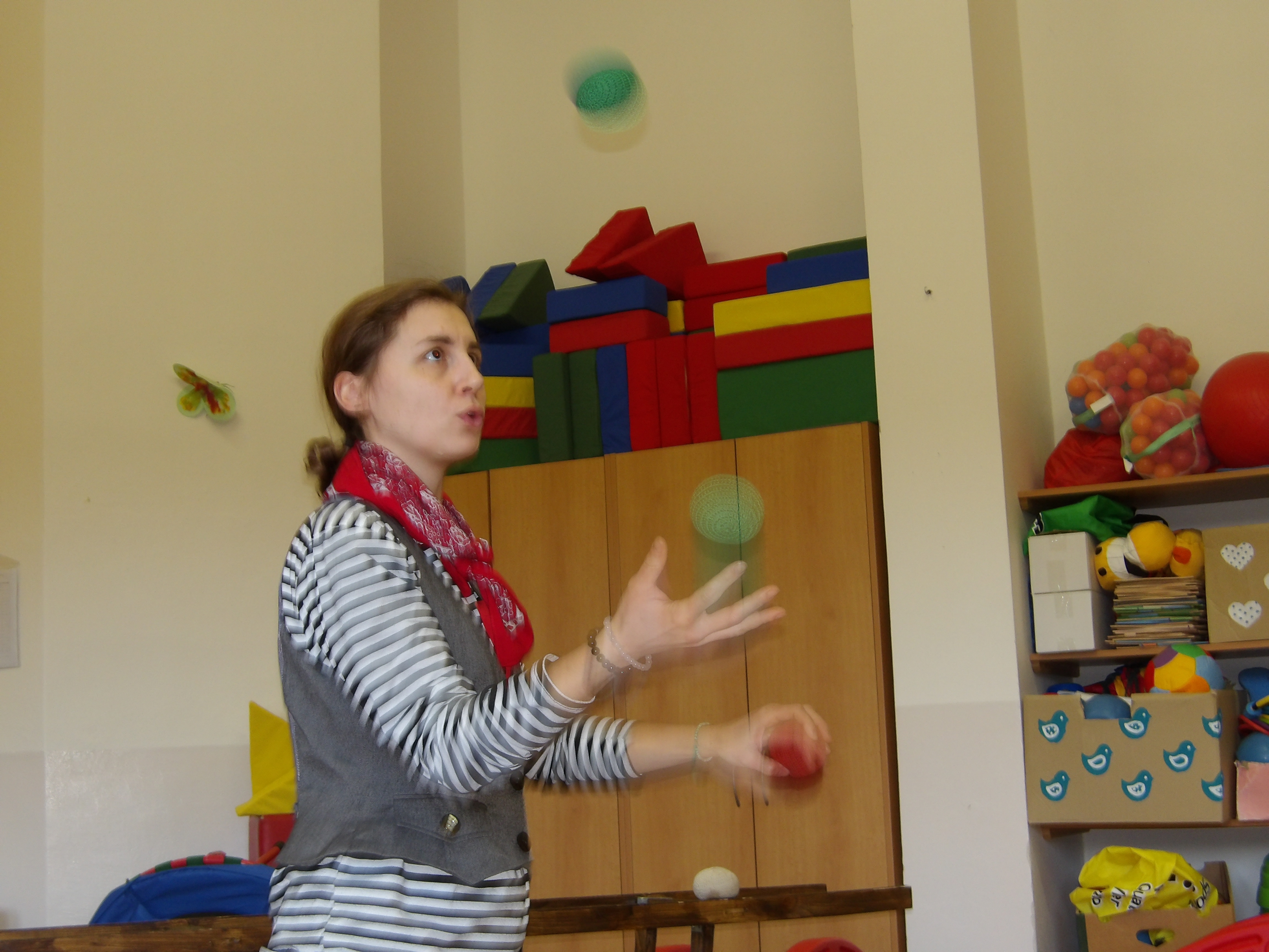 Umělkyně - kejklířka dětem představila klasické pohádky O Červené karkulce, O perníkové chaloupce a O šípkové Růžence v netradičním podání, kdy postavičky nahradila míčky, kužely a balónky. Dětem to však vůbec nevadilo. Kejklířka je dokázala svým způsobem natolik vtáhnout do děje, že se velice bavily a prožily si jak veselé, tak dramatické chvilky.