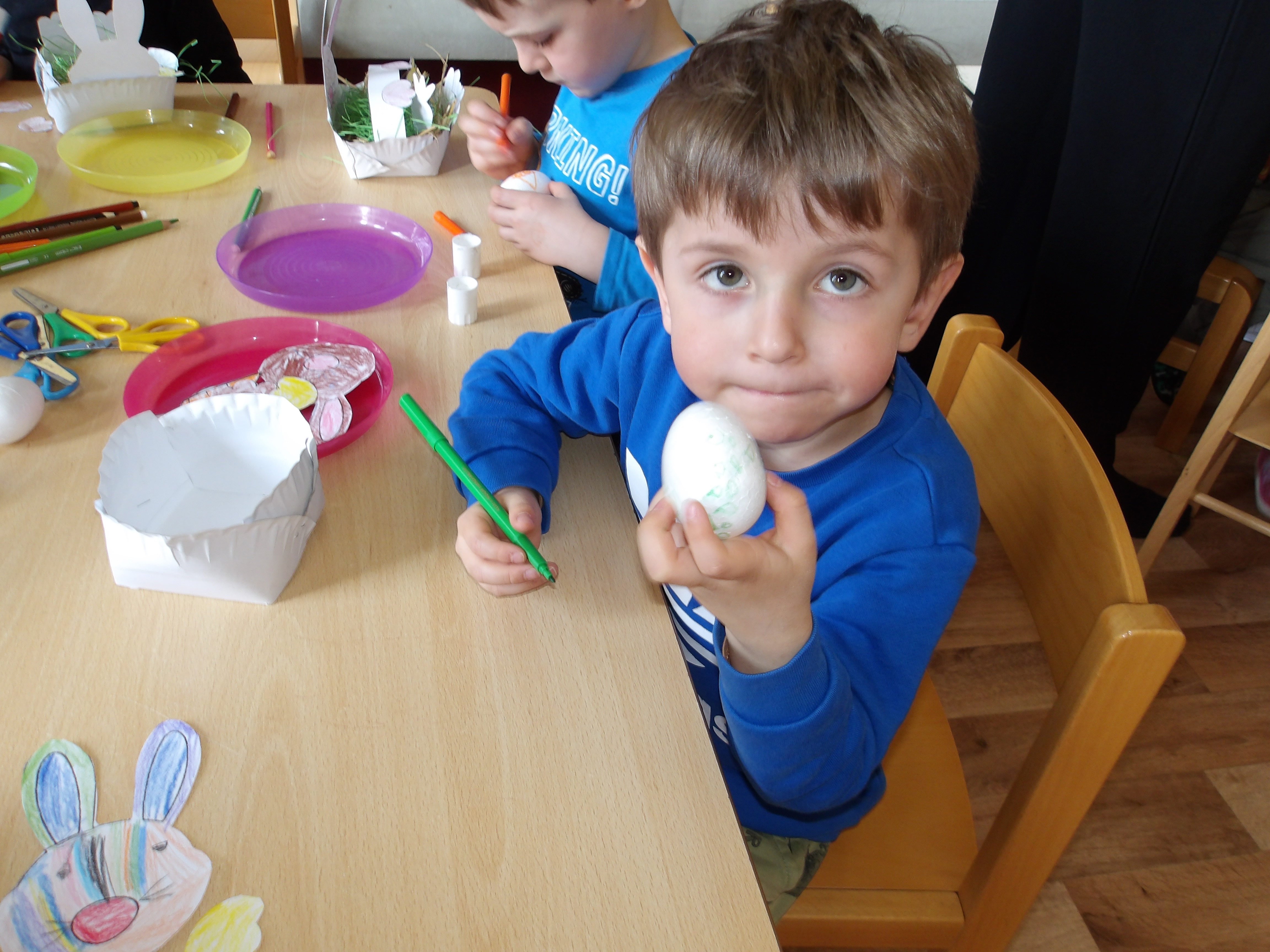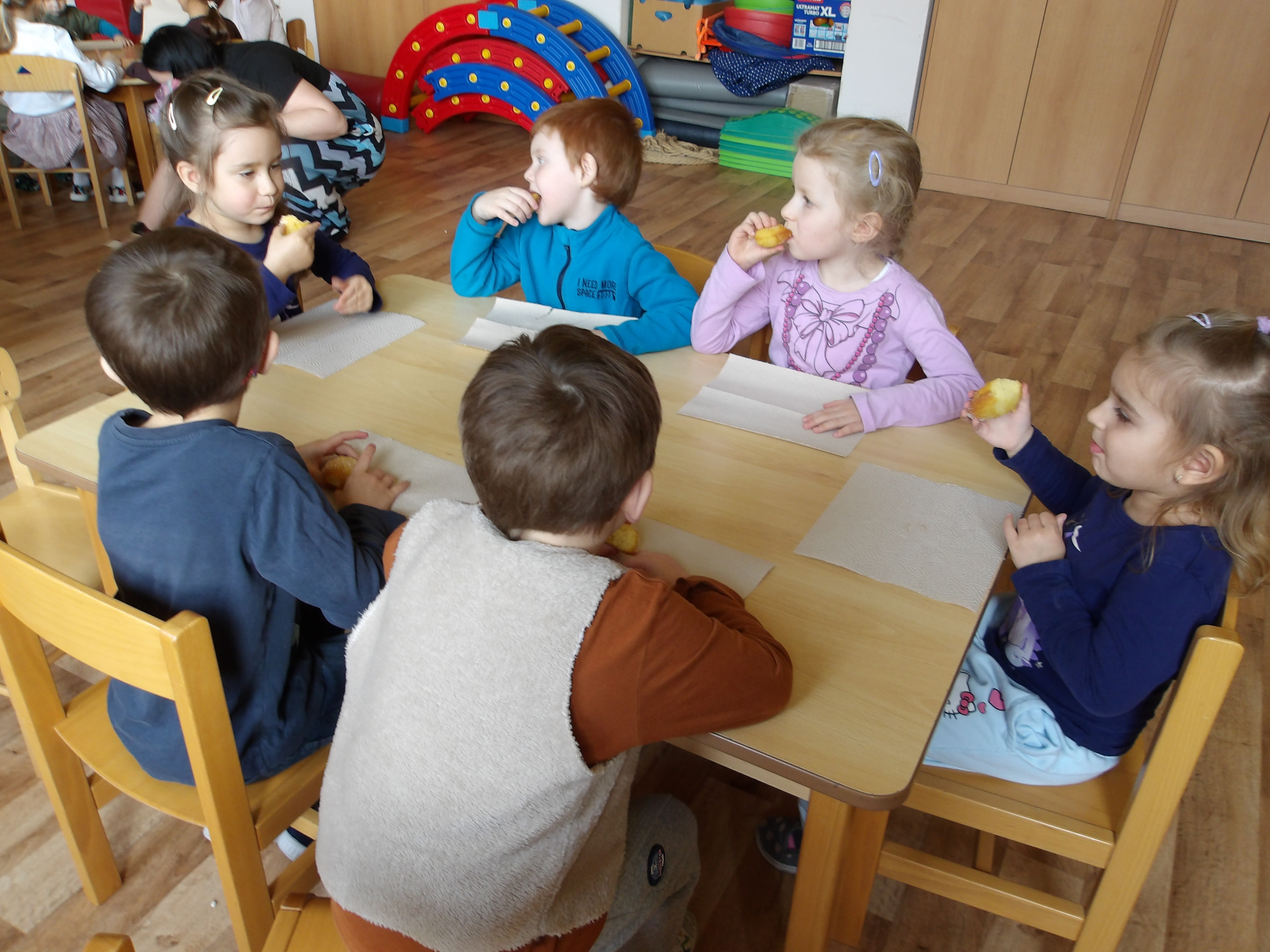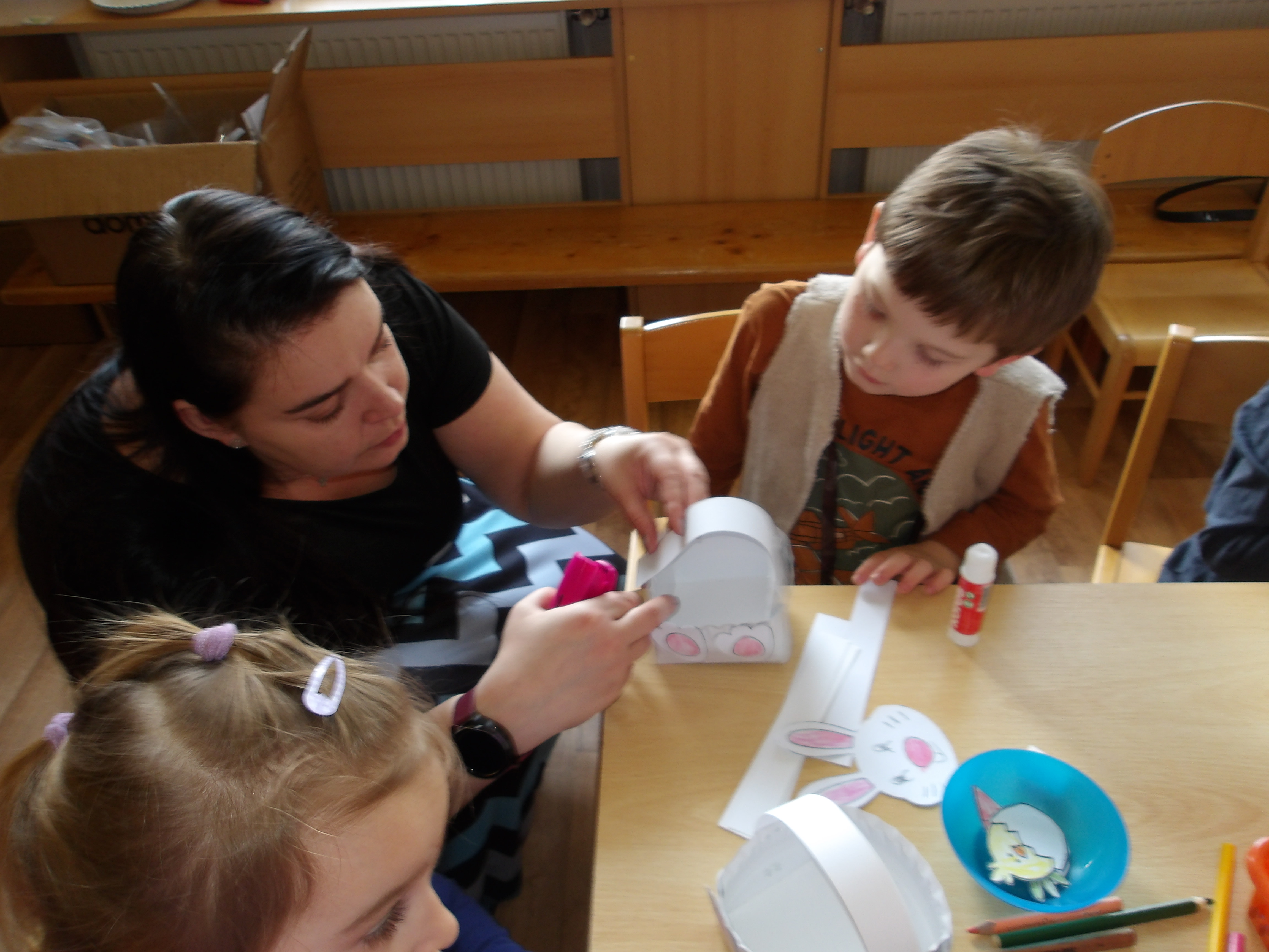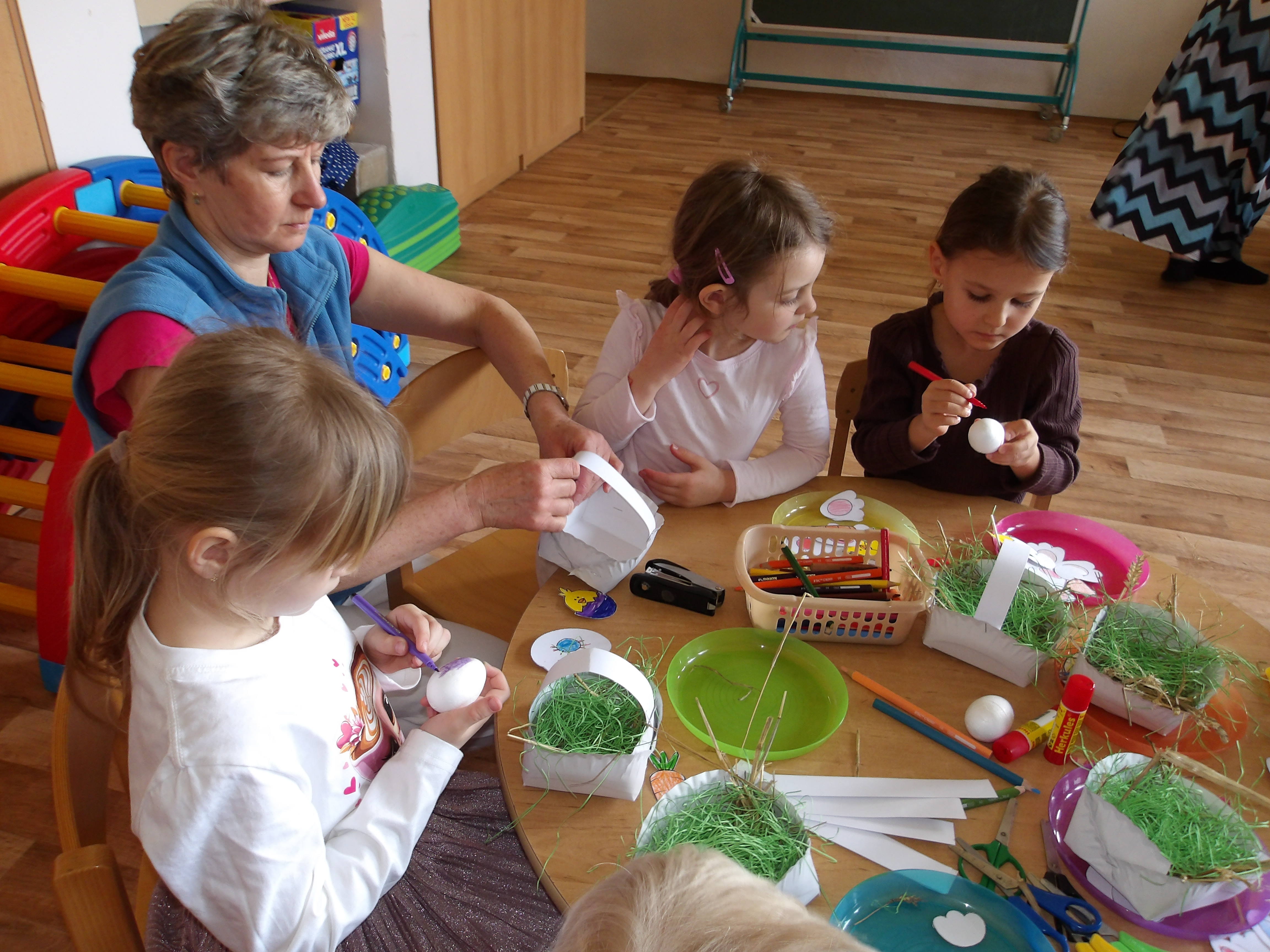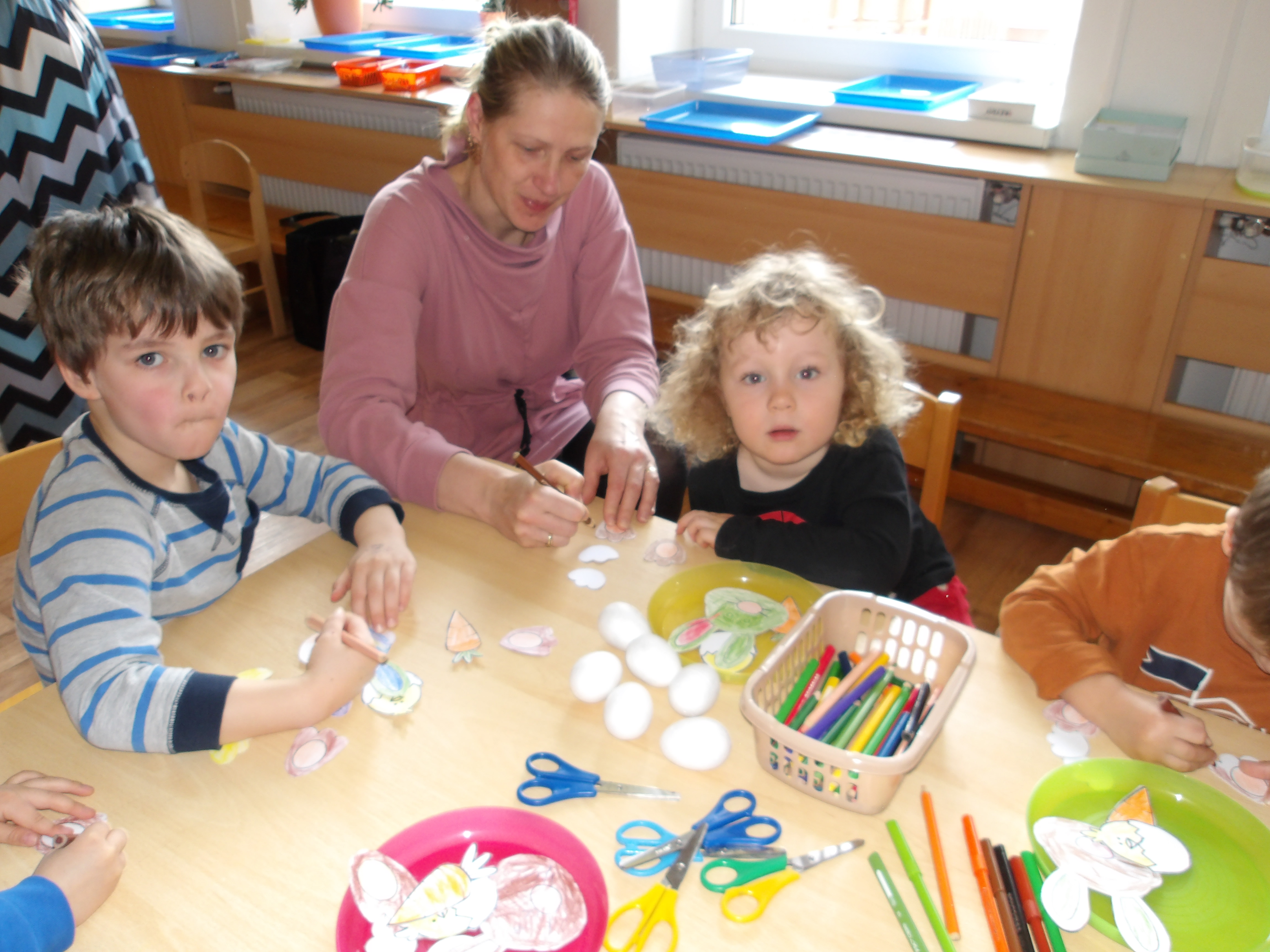 Dnes měly naše děti možnost zapojit se do příprav nadcházejících velikonočních svátků. Zahrály a zazpívaly si v kroužku a pak se pustily do tvoření. Vyráběly košíček se zajíčkem, vyzdobily vajíčko a nechyběla ani krásná ovečka. Na závěr si pochutnaly i na upečeném vajíčku. A velikonoční beránek nám bude připomínat tyto příjemně strávené společné chvíle až do Velikonoc, kdy si na něm děti také pochutnají. Děkujeme Charitě Třinec pod vedením maminky Rusnokové za velmi milou spolupráci. Naše děti na oplátku vytvořily velikonoční přáníčka pro babičky a dědečky, které je potěší prostřednictvím Charity.